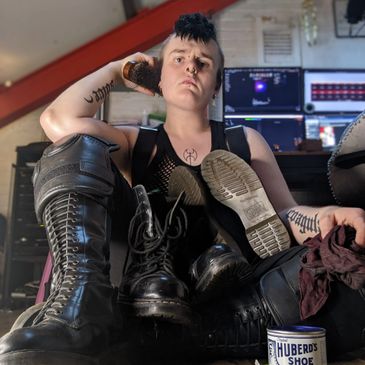 Astrid (she/her) is a leatherdyke and Bootblack living in North London. She was runner-up for the title of Bootblack Europe 2024, and has been maintaining and restoring the boots, jackets, trousers, chaps, waistcoats, and fetishwear of dykes and other queer leatherfolk in an official capacity since early 2023.
