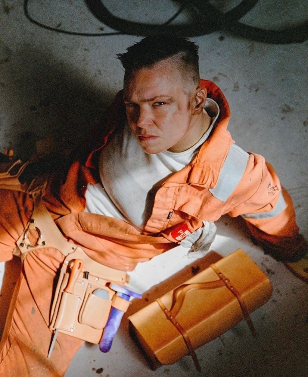 Martha posing in their hand made TOOLBELT.